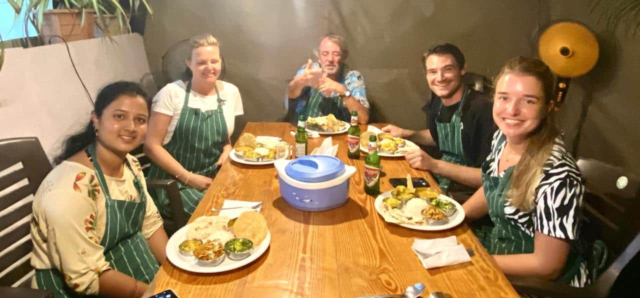 Asha Kumar Cookery School בהאמפי. לומדים להכין כ5 מנות מסורתיות, לומדים, טועמים, ונהנים מארוחה אותנטית משותפת על עלי בננה.