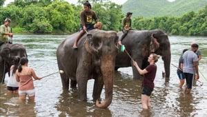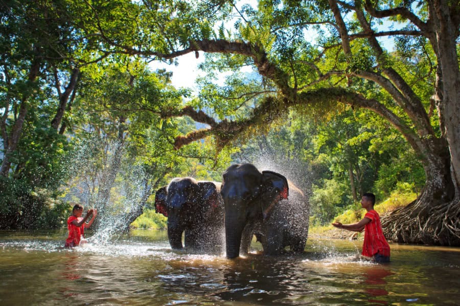 יום חווייתי בקנצ'נבורי: מפגש אתי עם פילים – האכלה, בוץ ורחצה בנהר, ביקור במפלי ארוואן, ארוחת צהריים ושילוב עם גשר הנהר קוואי.