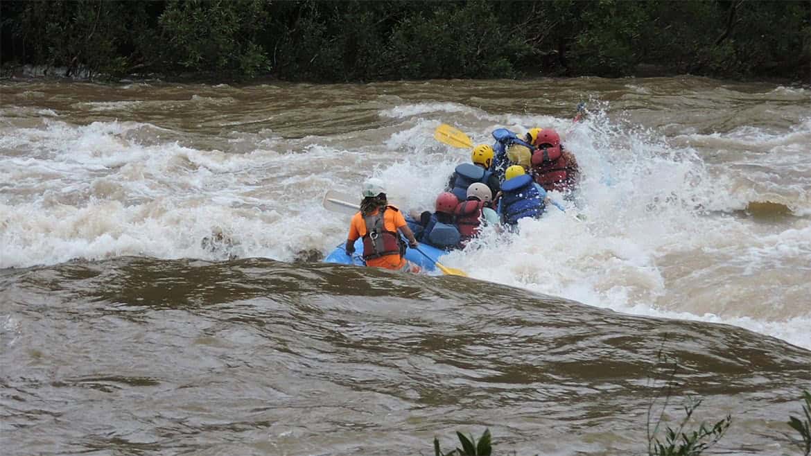 הרגע בו הראפט עובר את המערבולת הכי גדולה, כל הצוות קופץ מרוב התלהבות/
