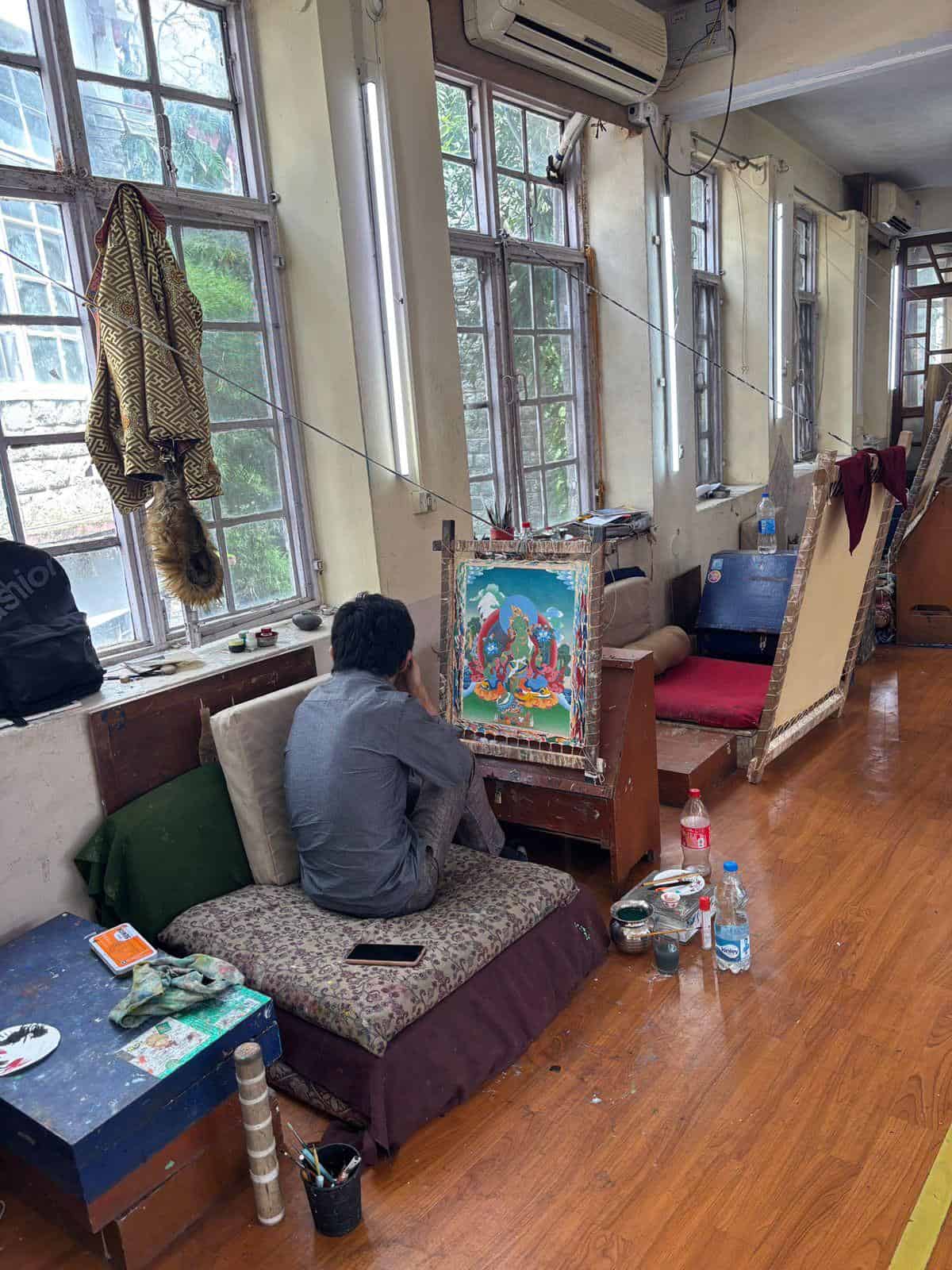 המפגש האישי עם נזיר טיבטי במכון נורבולינקה, כשהוא מסביר על אורח החיים הבודהיסטי תוך כדי נוף מרהיב של העמק הירוק.