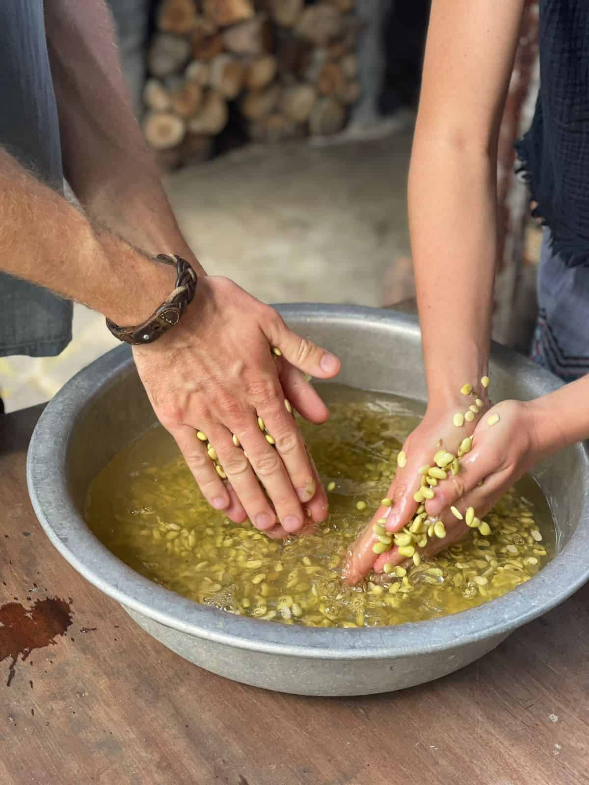 סדנה מרתקת להכנת טופו וגבינה טבעונית. בבית מסורתי מוקף שדות אורז באמצעות כלים מסורתיים ושעועית סויה.
