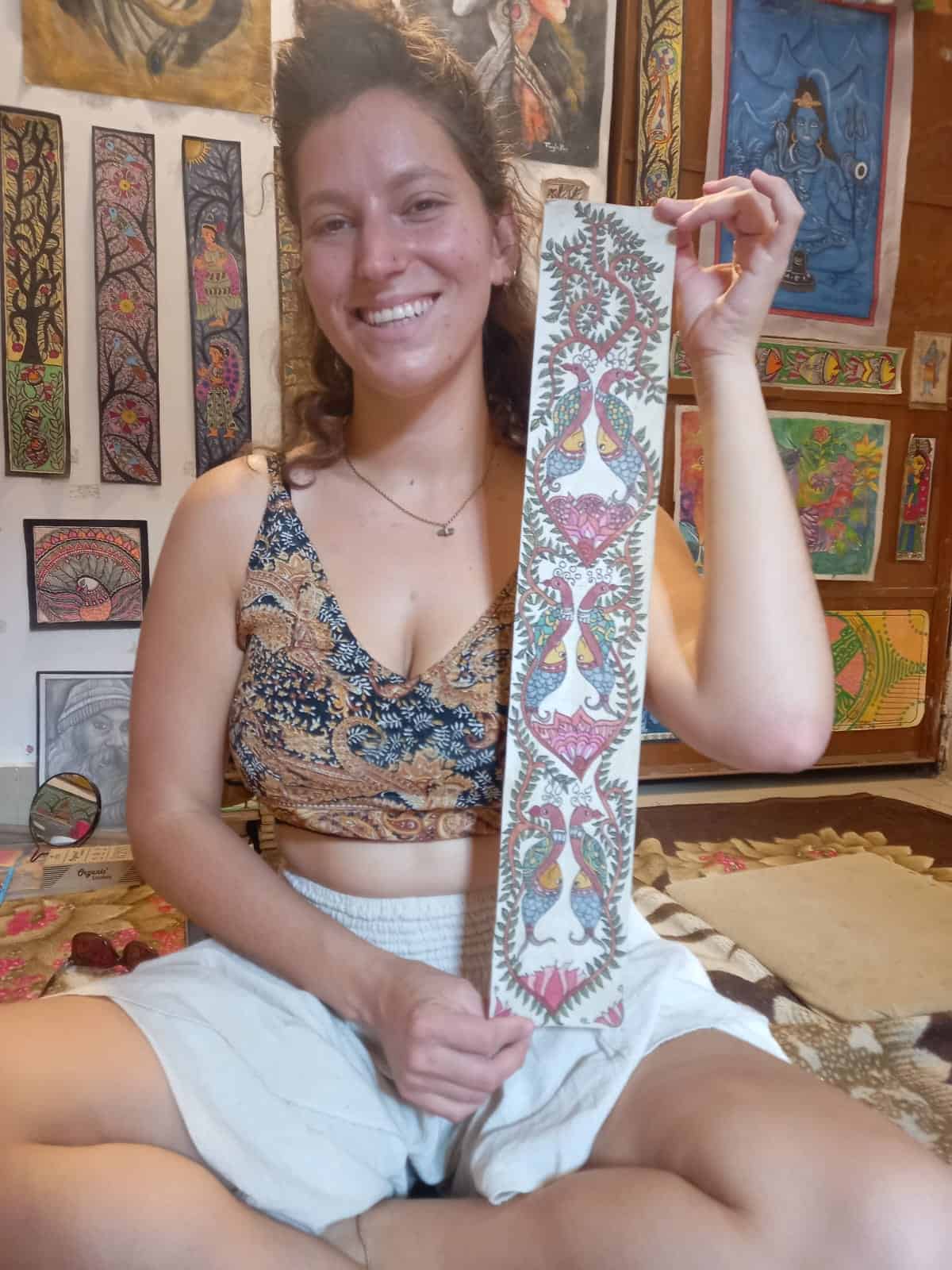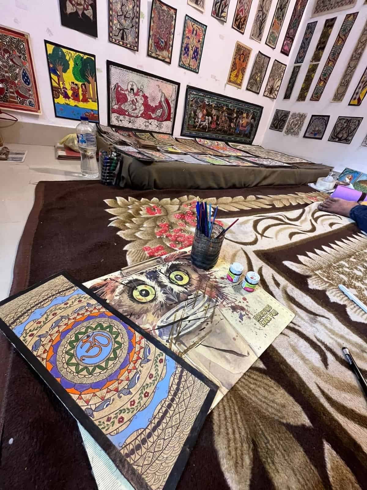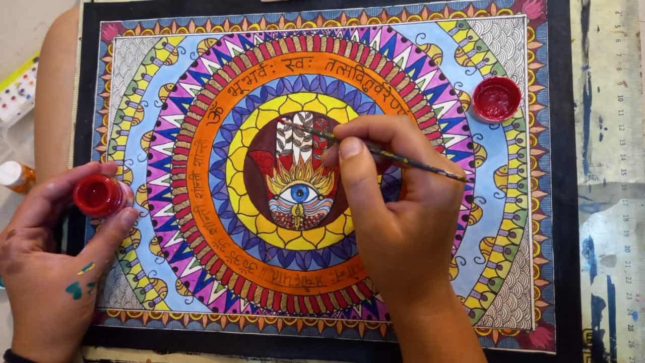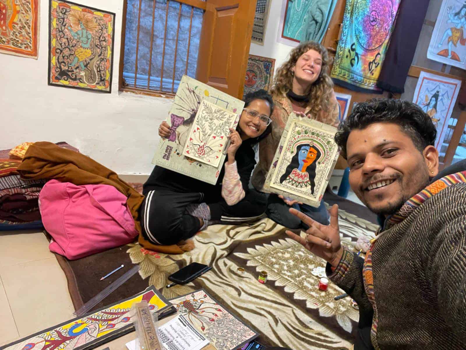 סדנת ציור חווייתית בגלריית Madhubani. בלואר טאפוון, רישיקש. לומדים טכניקות מסורתיות של ציור Madhubani, בכל יום בין 10:00–19:00. עם הדרכה אישית ויצירה אותנטית.