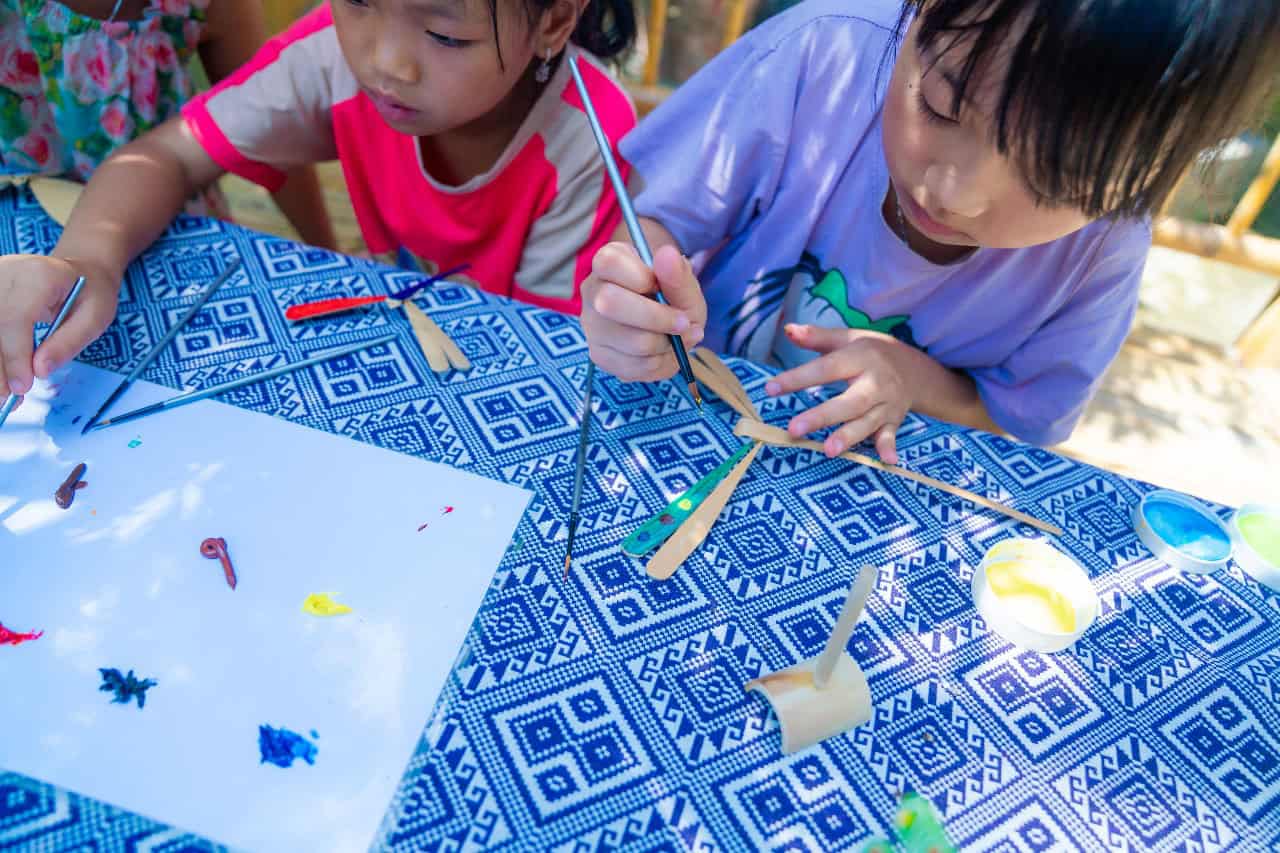 סדנת ציור חווייתית במאי צ'או. מציירים על כובעי קש וייטנאמים, צעצועי במבוק ותיקי בד. ויוצאים עם מזכרת אישית צבעונית וייחודית מהטיול.