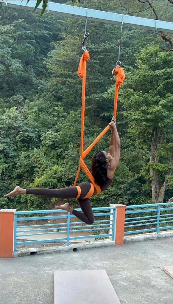 הרגע בו מצליחים להרגיש את הגוף קליל ומרחף, תלויים בערסל, תוך מעבר בין תנוחות יוגה, מתיחות והרפיה באוויר. שילוב של משחק, שלווה ותחושת חופש עוצמתית.