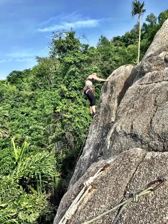 טיפוס סלעים על גרניט טבעי מול נוף טרופי עוצר נשימה בקו טאו – עם מדריכים מנוסים וציוד מקצועי.