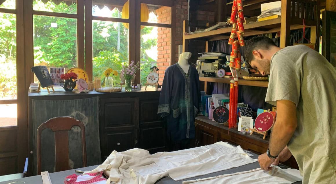 סדנת תפירה חווייתית עם Daisy בהוי אן. לימוד תכנון, חיתוך ותפירה במכונה, יצירת פריט לבוש או אביזר אישי. אווירה נעימה ומזכרת שימושית שאת/ה מכין בעצמך.