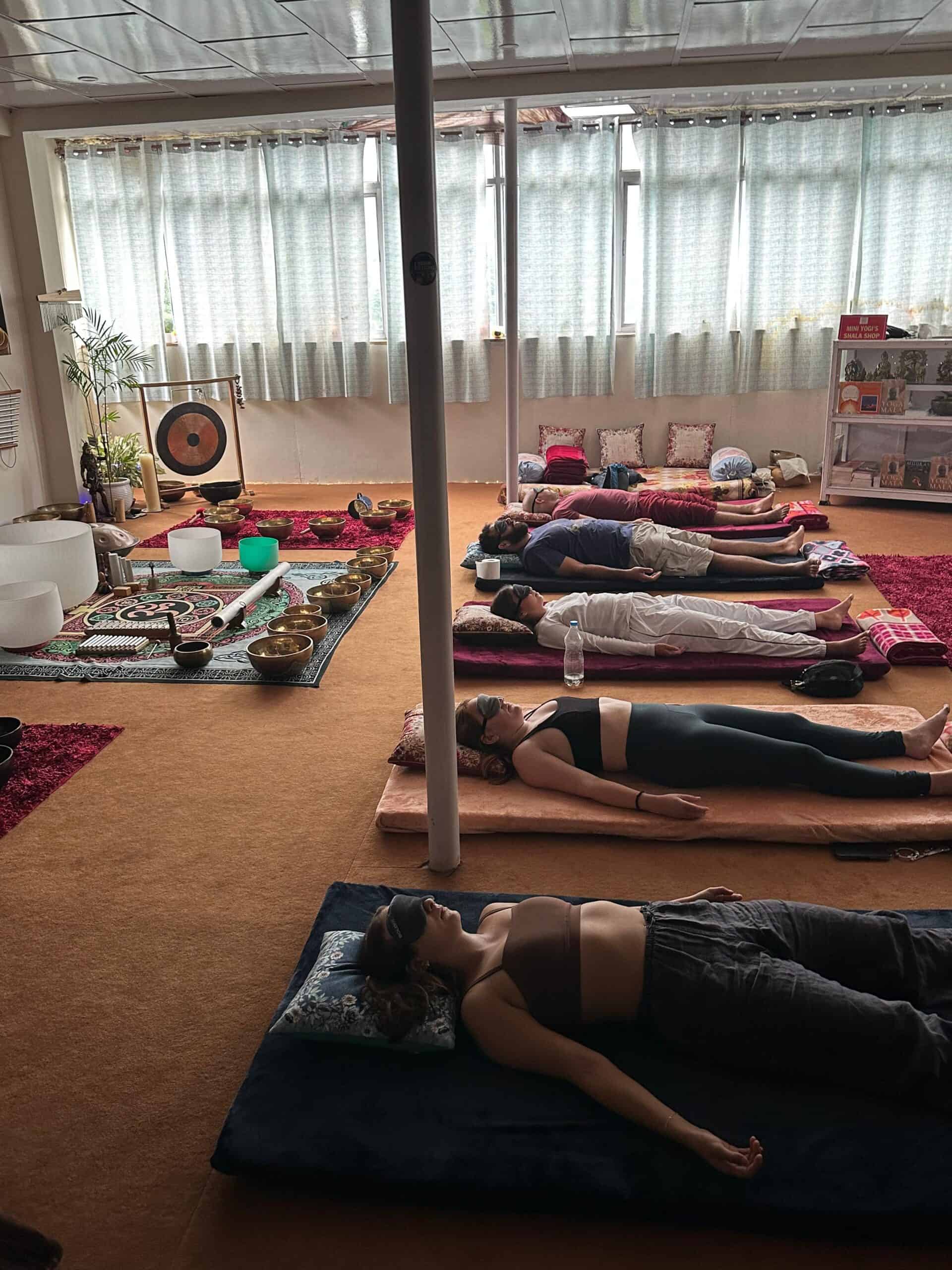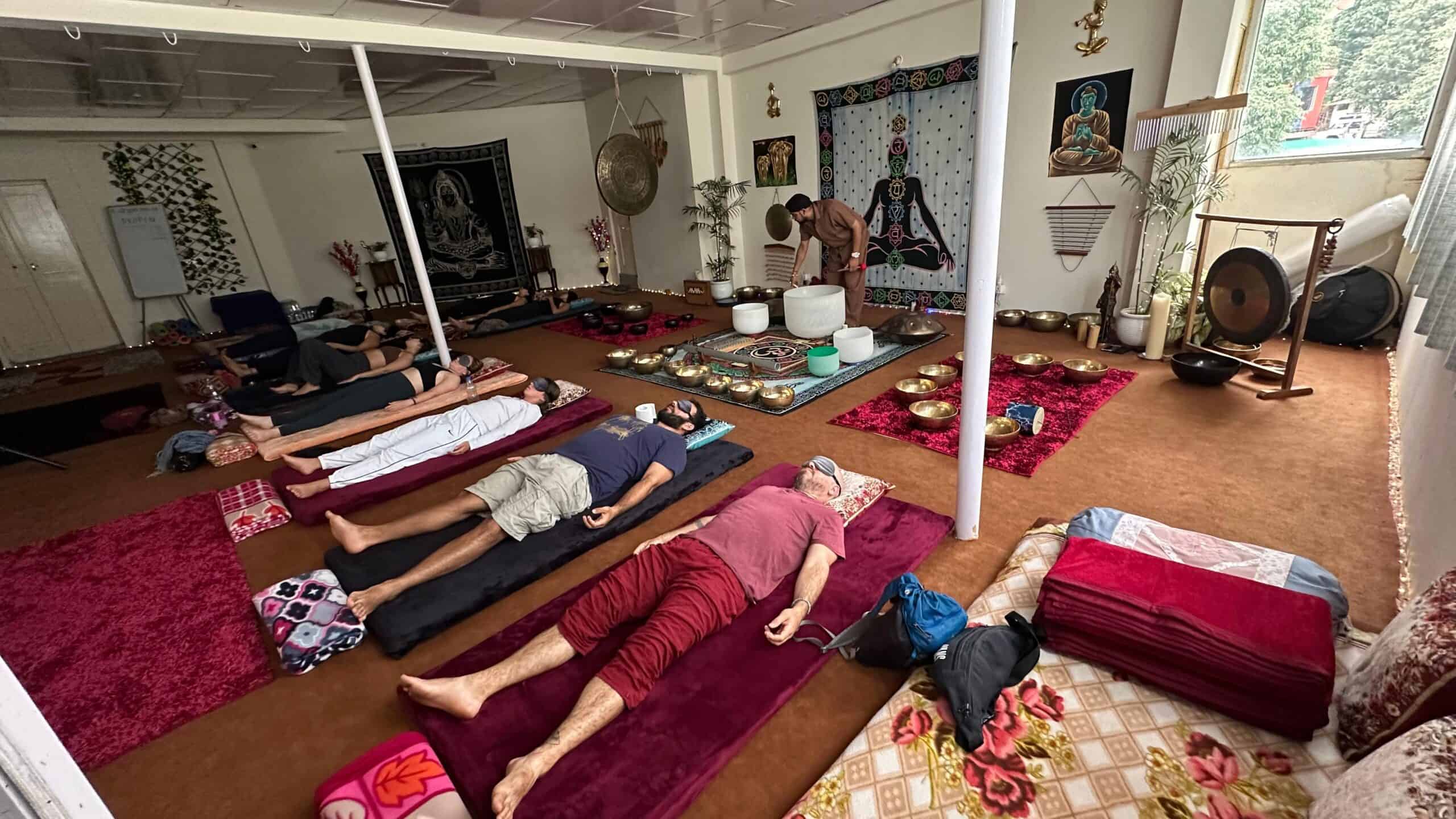 סאונד הילינג מרגיע בלב דרמסאלה. מסע של הרפיה עמוקה, ויברציות מרפאות וכלי מוזיקה ייחודיים שמביאים שלווה ואיזון נפשי־גופני.