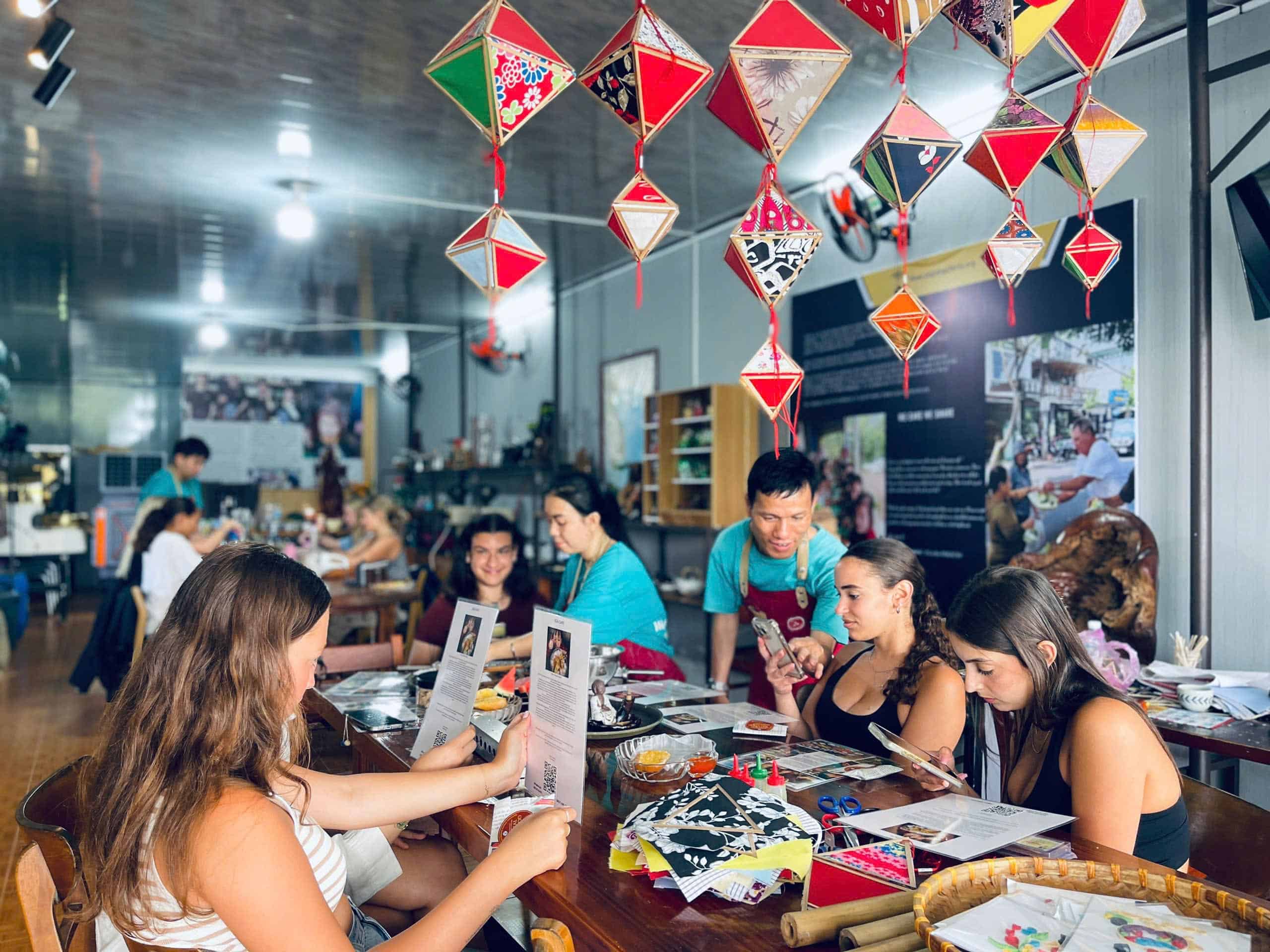 סדנת עיצוב נורות מסורתיות בהוי אן. חוויה תרבותית צבעונית, לימוד שלב אחר שלב של יצירת פנס וייטנאמי בבמבוק ובד משי. עם הדרכה אישית .
